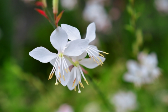 「ガウラ」 基本情報 和名 :ハクチョウソウ(白蝶草)学名 :Gaura lindheimeri(現在は Oenothera lindheimeri とも)科名 :アカバナ科(別説:マツヨイグサ科)属名 :ガウラ属(現分 …