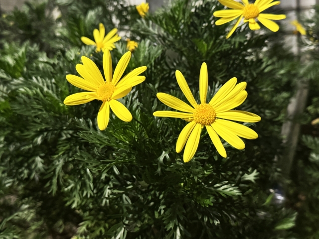 「ユリオプスデージー」 基本情報 和名:ユリオプスデージー(英名:Euryops daisy)学名:Euryops pectinatus科名/属名:キク科/ユリオプス属原産地:南アフリカ開花時期:10月〜5月頃(秋〜春に …